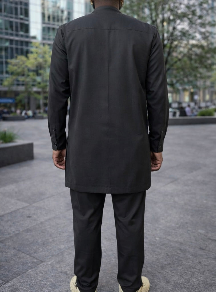 Incarnez la force et la détermination avec l'ensemble Djambar. Hommage à la bravoure, cette tenue "All Black" est conçue pour l'homme d'action qui cultive une élégance sombre et mystérieuse. Une armure de style pour affronter le quotidien avec prestance.