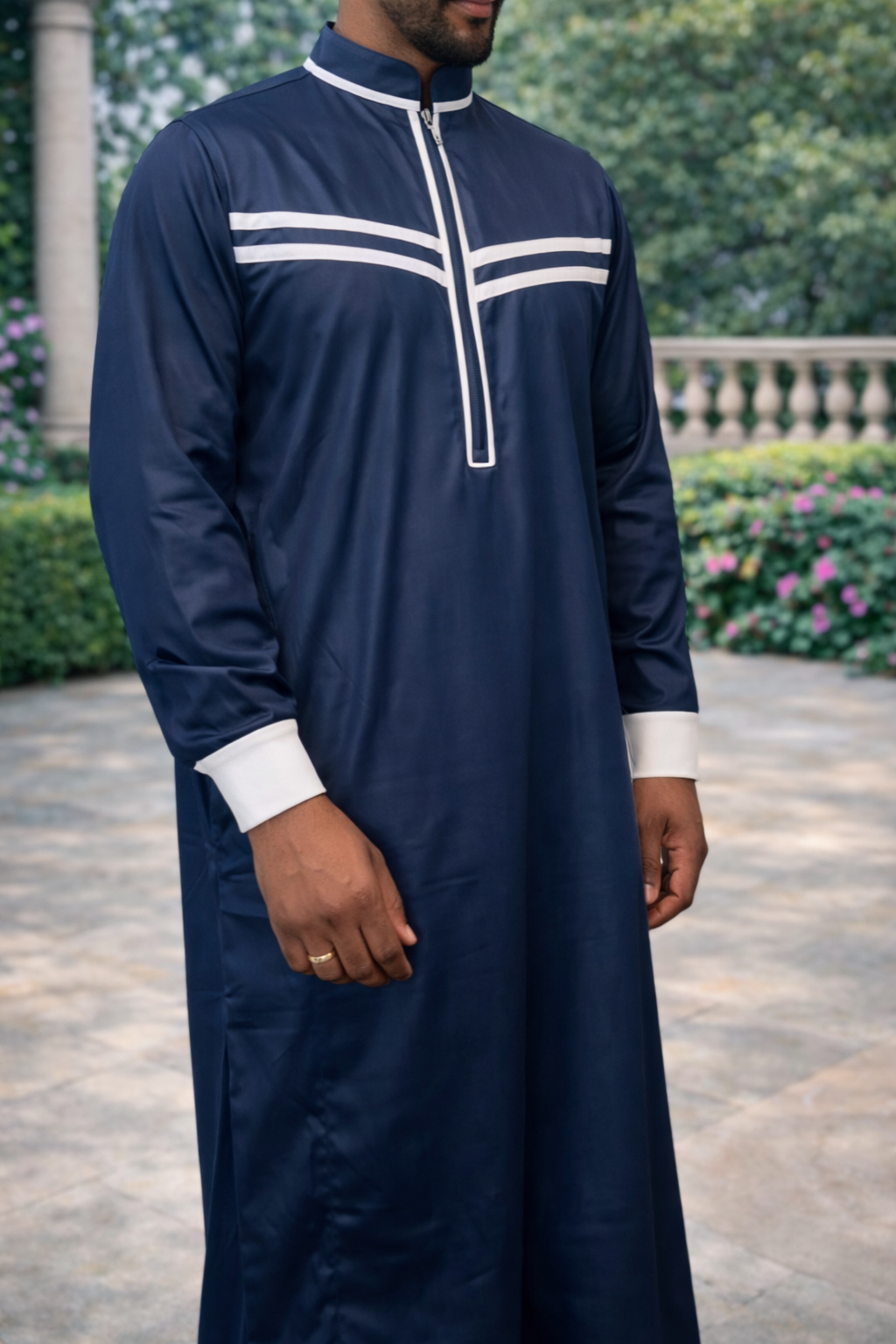 Affirmez votre prestance avec le Qamis Émirats. Inspirée par l'élégance intemporelle des émirats, cette pièce est le parfait équilibre entre sobriété et distinction. Conçu pour l'homme moderne qui honore ses racines tout en cultivant un style impeccable, il impose le respect dès le premier regard.