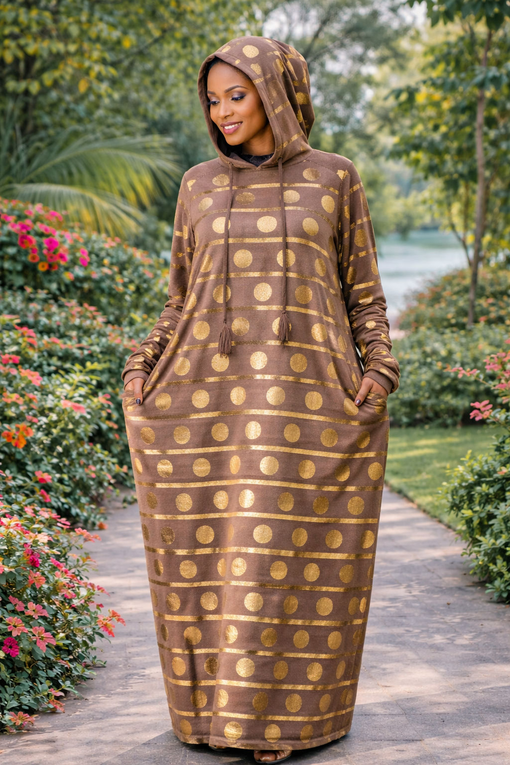 C'est la tenue idéale pour recevoir avec élégance ou pour une sortie où le confort est roi. Ne surchargez pas : une paire de mules élégantes ou de sandales plates suffisent. Si vous portez la capuche, misez sur de jolies boucles d'oreilles dormeuses ou puces pour une touche d'éclat discrète.